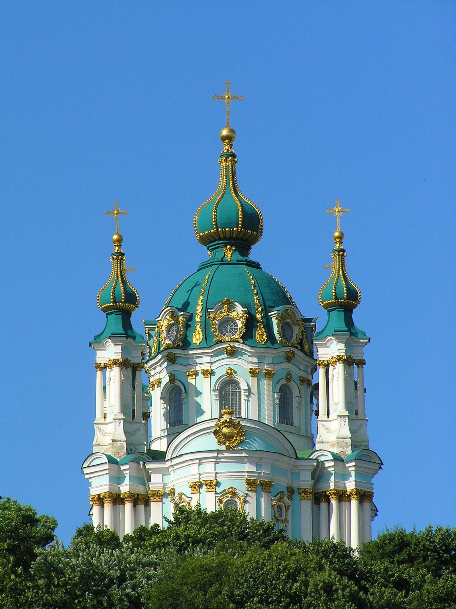 The Saint Andrew’s Church is a major Baroque church located in Kiev, the capital of Ukraine. The church was constructed in 1747–1754, to a design by the Italian architect Bartolomeo Rastrelli. It is sometimes incorrectly referred to as a cathedral. The church is part of the National Sanctuary “Sophia of Kiev” as a landmark of cultural heritage. Source: Wikipedia