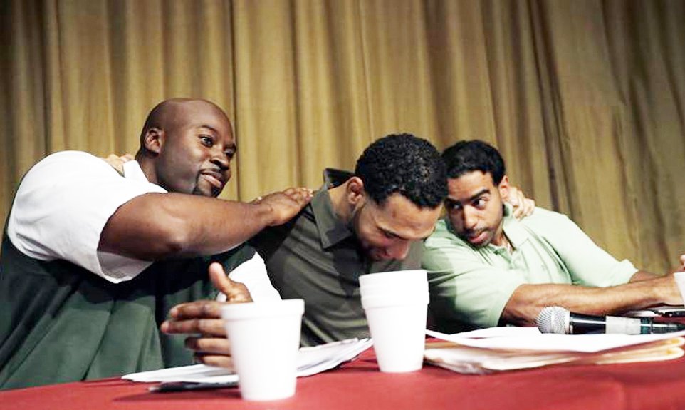On one side of the stage at a maximum-security prison here sat three men incarcerated for violent crimes.