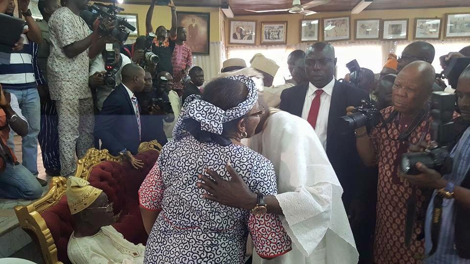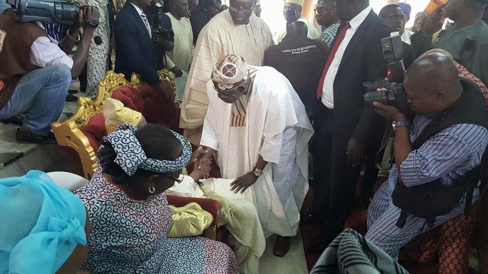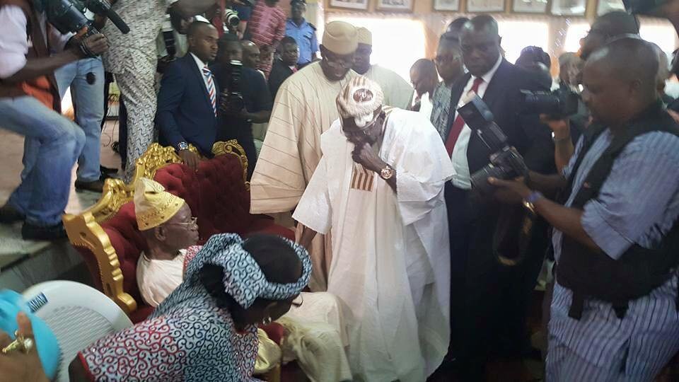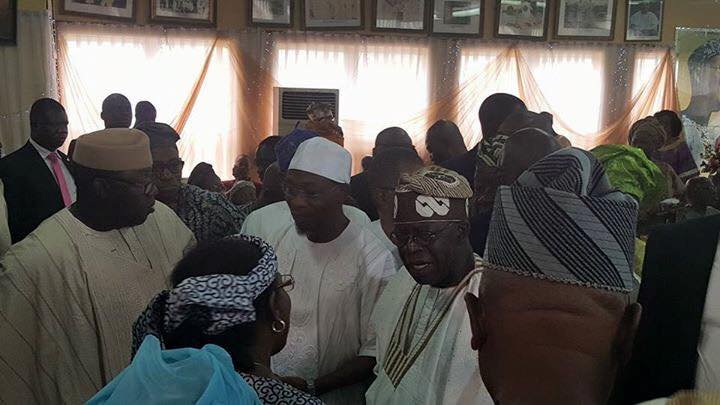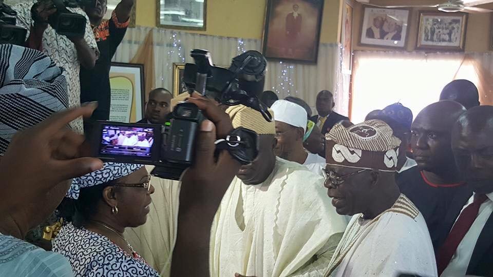 The former Governor and present Governor of Lagos State, Asiwaju Bola Tinubu and Governor Ambode, in the company of Gov. Aregbesola of Osun, former Governor of Ekiti State, Kayode Fayemi were all in Ikenne, Ogun State to commiserate with the family of Awolowo on the death of their Matriach.